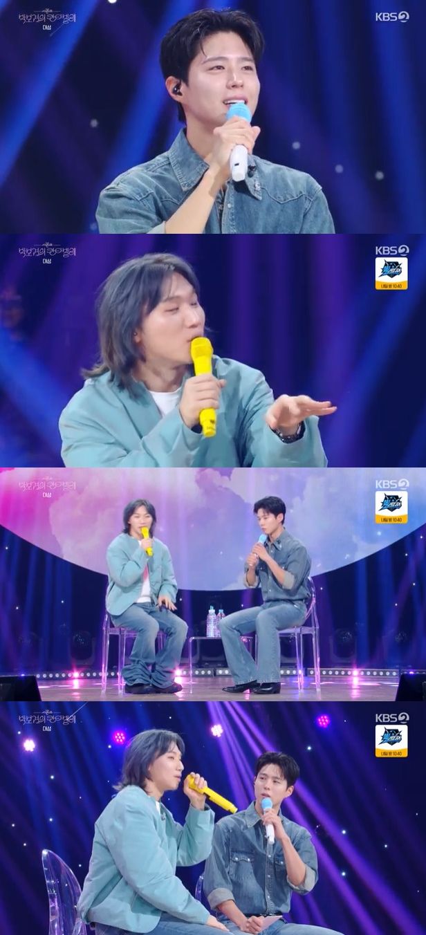 이를 들은 대성은 "뒤에서 종신이 형이랑 같이하는 걸 봤는데 '아니 저렇게 생기셔놓고, 인성도 좋고, 노래까지 잘하면'"이라며 박보검을 극찬하자, 박보검은 "과찬입니다"라며 대답했다.