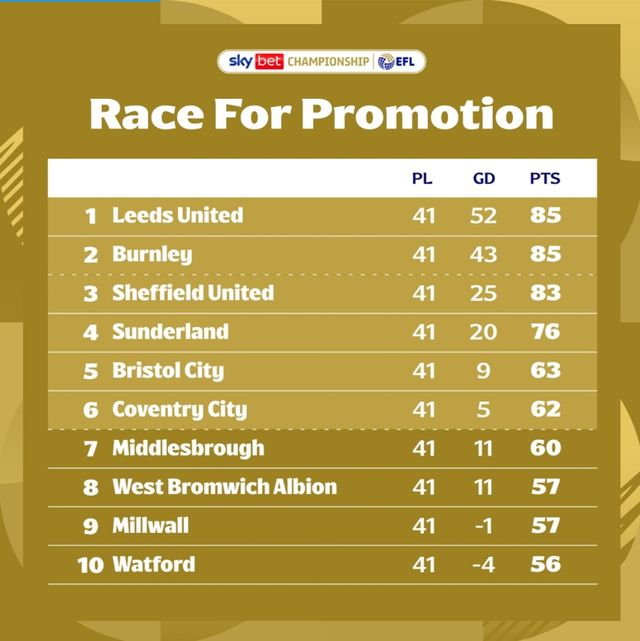 현재 5위 브리스톨 시티(승점 63)와 미들즈브러와의 승점 차는 3점이고, 6위 코번트리 시티(승점 62)는 미들즈브러와 승점이 2점 밖에 차이나지 않는다.
