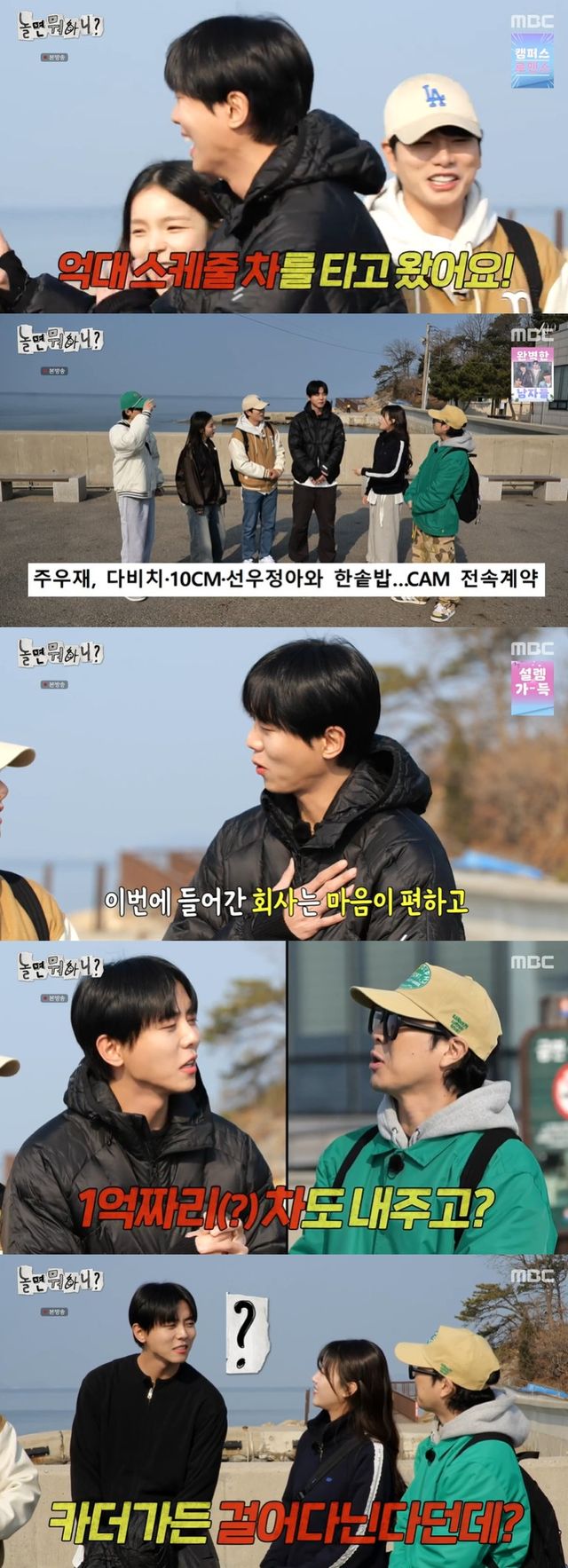 (엑스포츠뉴스 김보민 기자) '놀뭐' 멤버들이 주우재의 소속사 이적 이후 달라진 스케줄 차량을 언급했다.