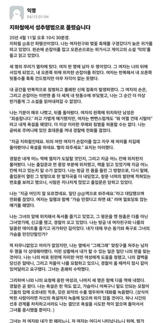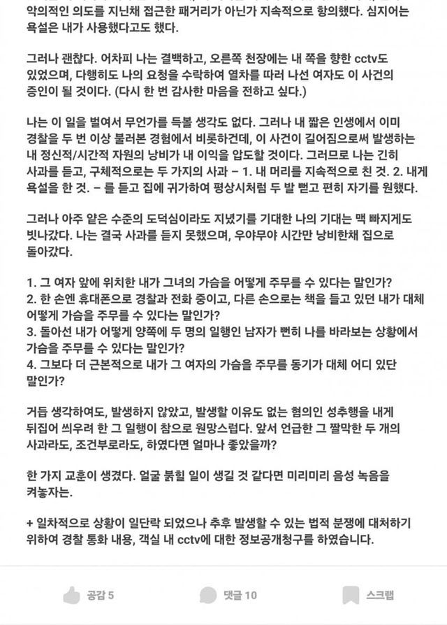 3)경찰 신고하니까 가슴만졌다고 허위사실 만들려함