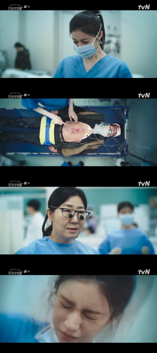 교수는 "정신 안 차려? 복강내출혈 못 잡으면 이 환자 가망 없어. 몰라? 뭐해? 빨리 안 하고. 동시 수술 진행한다. 뇌압부터 낮출 테니까 오이영 선생 직접 손으로 심장 마사지 들어가"라며 다그쳤다.