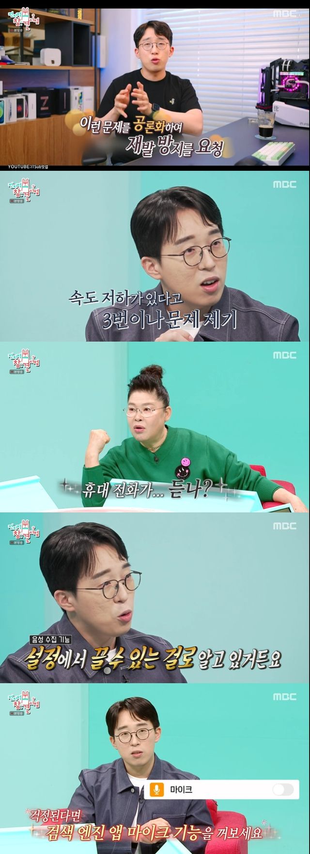 송은이가 "기계를 만드는 회사에서 긴장할 것 같다"고 하자 잇섭은 자신이 공론화한 '인터넷 속도 저하 사건'을 언급했다.