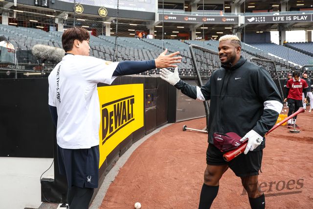 한편 푸이그는 이날 류현진에게 자신의 배트 중 하나를 선물했다. 자신이 사용하지 않는 무게의 배트를 골라 직접 류현진 선수에게 건네줬다. 키움 최고참 이용규도 잠시 류현진, 푸이그와 짧게나마 즐겁게 대화를 나눴다.