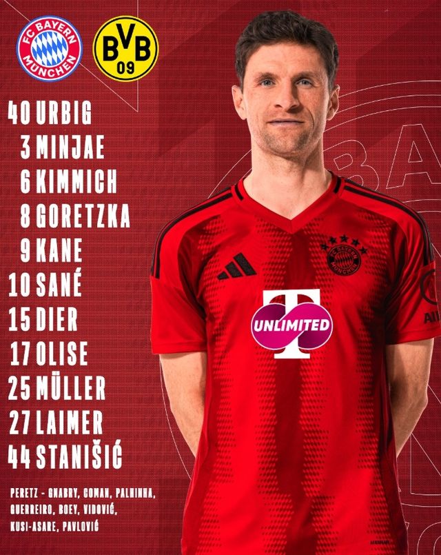 바이에른 뮌헨은 13일(한국시간) 오전 1시30분 독일 뮌헨에 위치한 알리안츠 아레나에서 보루시아 도르트문트와 2024-25시즌 분데스리가 29라운드 홈경기이자 '데어 클라시커'를 앞두고 선발 명단을 발표했다.