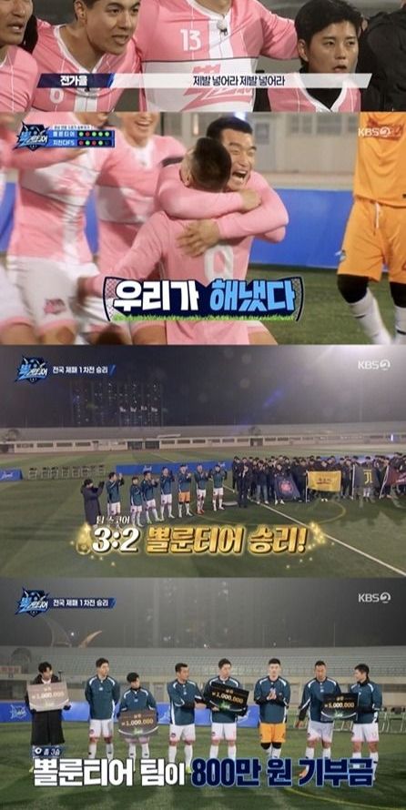 [뉴스컬처 김기주 기자] '뽈룬티어'가 경상 연합을 상대로 3 대 2 극적인 승리를 거두며 기부금 800만 원을 획득했다.