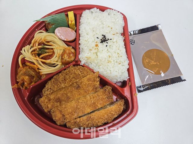 11년만에 직접 제품을 구입해봤다. 주말 점심시간 품절 매장이 은근히 많았다. 재고가 남은 곳을 GS25 애플리케이션(앱)으로 찾아서 방문해야 할 정도였다. 뚜껑을 열면 큼지막한 등심 돈까스가 자리 잡고 주변 스파게티 등 반찬이 알차게 채워져 있다. 돈까스 소스도 별도 포장되어 있다.