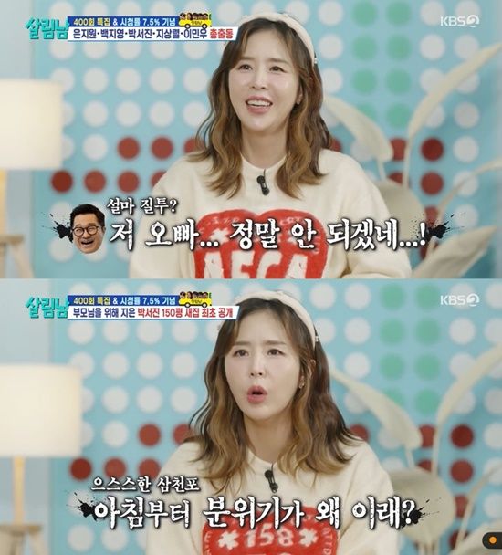 지난 12일 방송된 KBS 2TV '살림하는 남자들' 400회 특집에는 백지영, 은지원, 이민우, 지상렬 등 '살림남' 가족들이 총출동한 박서진의 집들이 현장이 공개됐다.