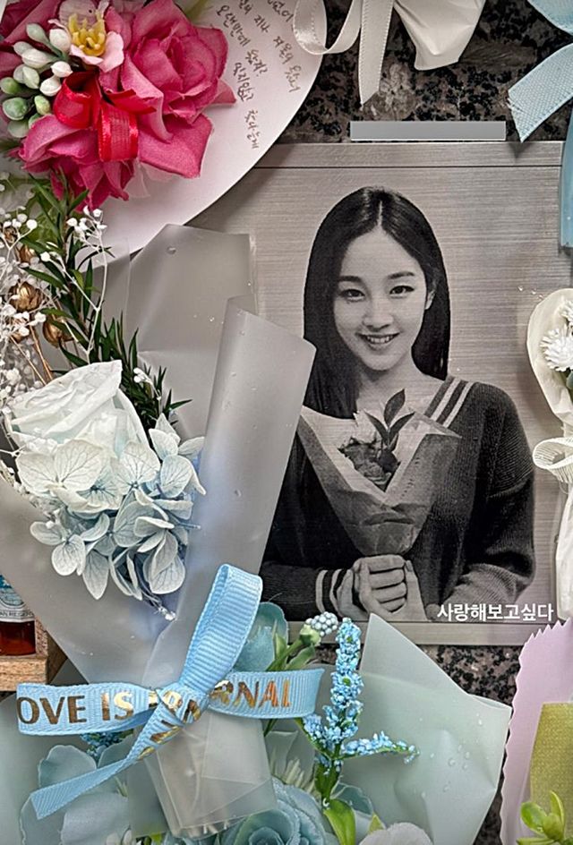 사진 속에는 박보람의 영정사진이 담겨있다. 환하게 웃고 있는 모습에 먹먹함이 느껴진다. 생전 고인과 절친했던 허영지는 박보람의 1주기를 맞아 납골당을 방문한 것으로 보인다.