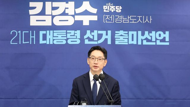 더불어민주당 김경수 전 경남지사가 13일 세종시청에서 대선 출마 선언을 하고 있다. / 연합뉴스