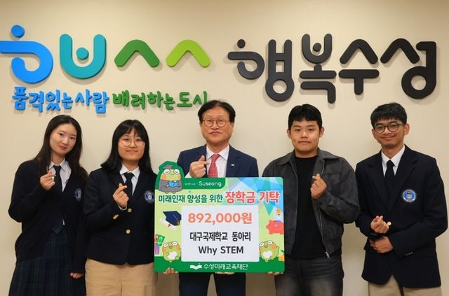 [파이낸셜경제=김영란 기자] 대구국제학교 동아리 Why STEM은 지난 10일 미래인재 육성과 지역 교육발전을 위해 장학금 89만 2천 원을 수성미래교육재단에 전달했다.