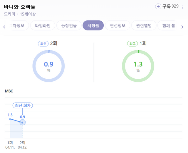 MBC 새 금토드라마 '바니와 오빠들' 시청률 추이 / 네이버