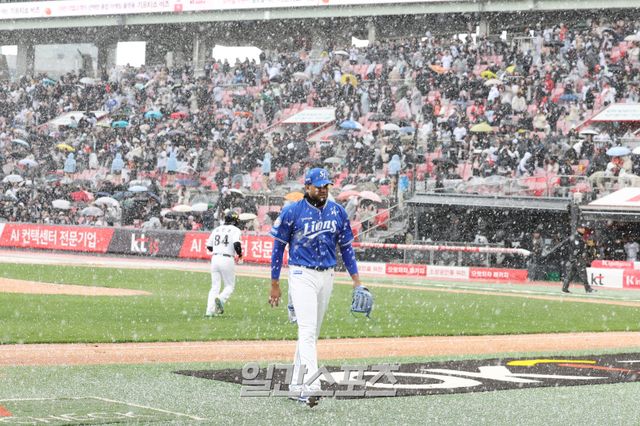 KT 위즈가 우박세례를 뚫고 2연승을 달렸다.