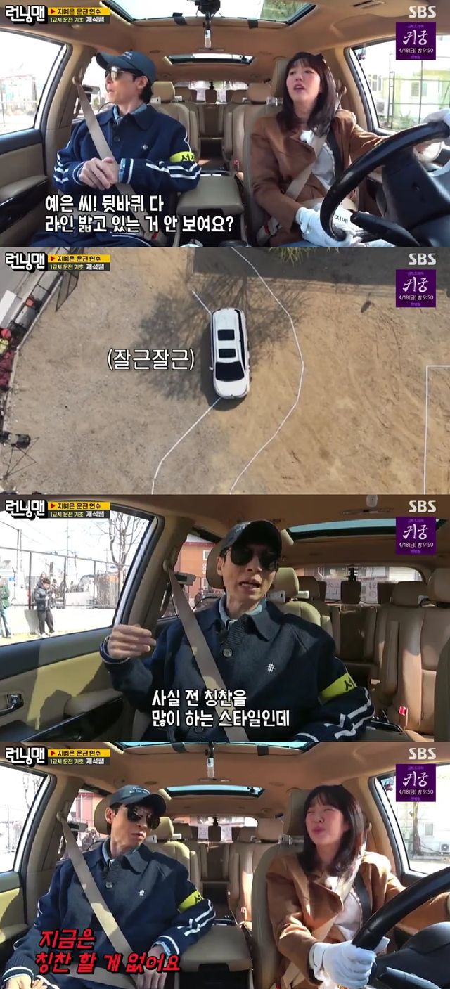 첫 번째 코너부터 차량이 라인을 침범하자 유재석은 "지금 뒷바퀴 다 라인 밟고 있는 거 안 보이냐"며 지적했고, "전 칭찬을 많이 하는 스타일인데 지금 칭찬 할 게 없다"고 단호한 태도를 보였다.