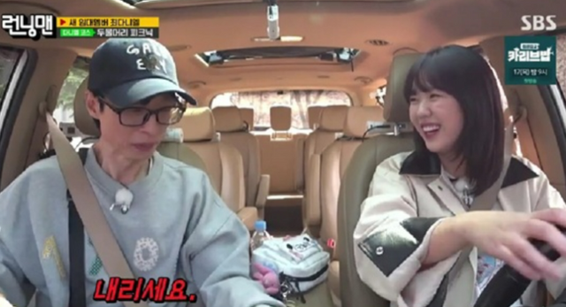 유재석은 13일 방송된 SBS 예능프로그램 ‘런닝맨’에서 지예은이 운전하는 차량에 탄 후 “운전을 해본 적 없냐. 도로에 나가본 적 없냐”라고 물었다.