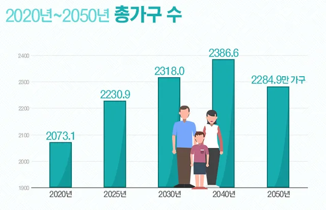 저출산이 심각하지만 가구수는 2040년까지 증가 예정