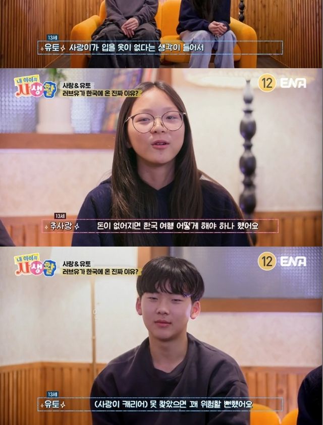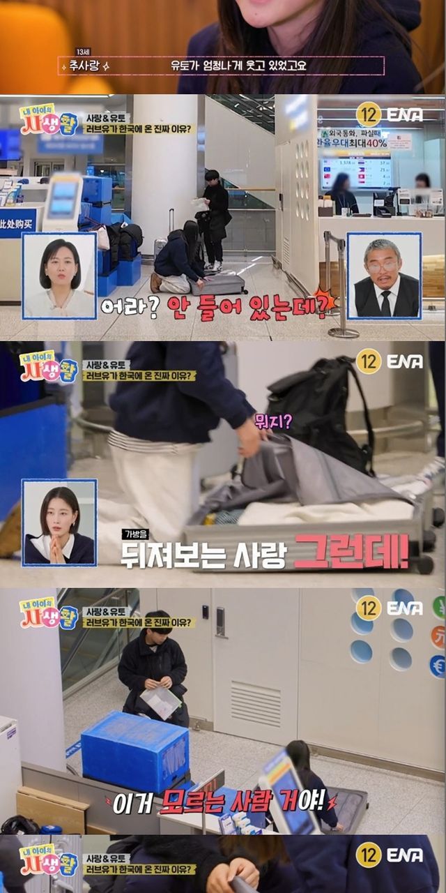 13일 방송한 ENA 예능프로그램 ‘내 아이의 사생활’에서 추사랑과 유토는 화보 촬영을 진행하기 위해 한국으로 향했다.