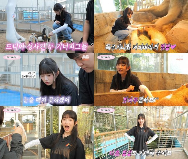 동물원에 입성한 레이는 촬영 전 새끼 기니피그가 태어난 소식을 접해 설레는 마음을 감추지 못했다. 마침내 기니피그 가족들을 만난 레이는 “귀엽다”를 연발하면서도 ‘폭주기니’ 안무를 떠올리며 “팬들 눈에는 우리가 이렇게 보였던 거야”라고 웃었다. 레이는 기니피그를 바라보며 “얘네들은 폭주기니 안 하냐”는 엉뚱 발랄한 매력을 보여줬다. 기니피그의 울음소리를 따라 하며 직접 먹이를 주기도 했다.