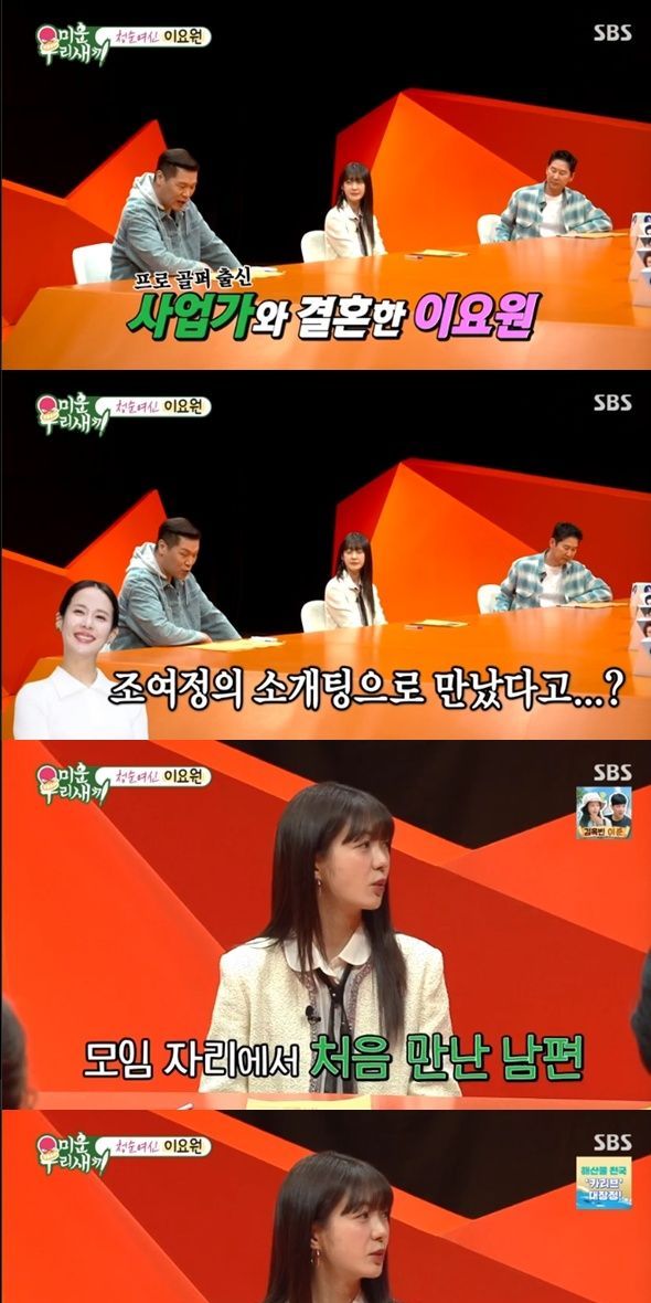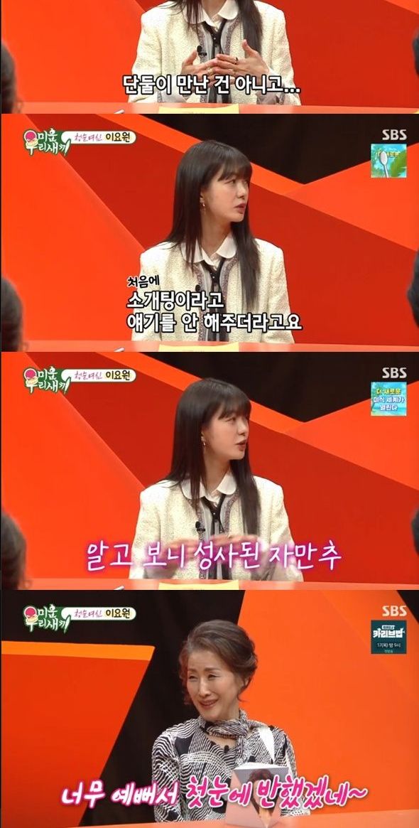 이요원은 "소개팅이라고 해서 단둘이 만난 게 아니라 어떤 모임 자리에 내가 간 거고 거기에 지금 남편이 있었다. 소개팅이라고는 얘기를 안 했다. 나중에 알고 보니 연결해 주려고 한 거다.