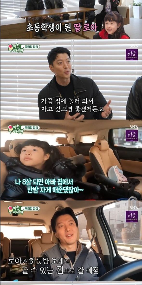 이동건도 "나는 이사할 때가 됐다. 애가 있지 않냐. 초등학교에 들어가고 커서 가끔 집에 와서 자고 갔으면 좋겠더라. 이제 잘 수 있는 나이다. 지금 사는 집은 혼자 살기에 최적화 된 집이다. 로아를 위한 공간을 만들어주고 싶어서 나도 요즘 집을 보고 있다"라고 밝혔다.
