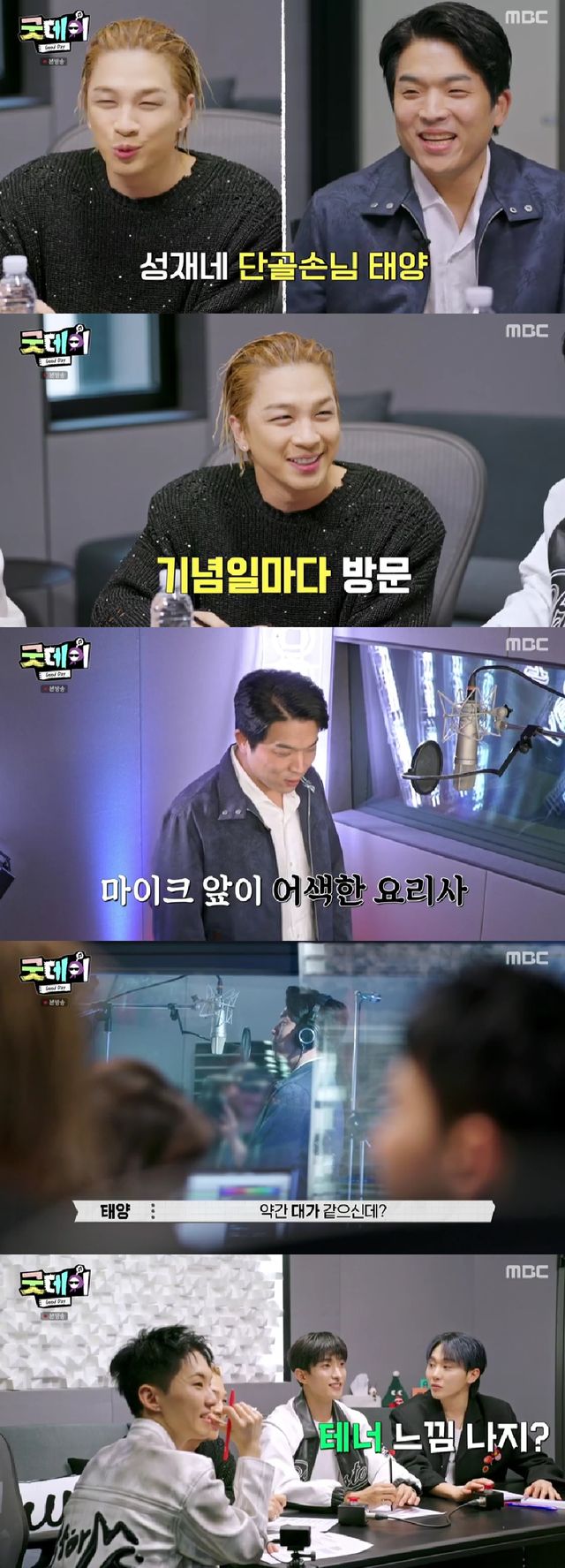 이날 태양과 안성재 셰프의 만남이 성사됐다. 앞서 안성재는 태양의 팬이라고 밝혔던 바 있다. "뭐 하다 왔냐"는 질문에 안성재는 "(식당) 오픈 준비 중이다"며 바쁜 일상을 전했다.