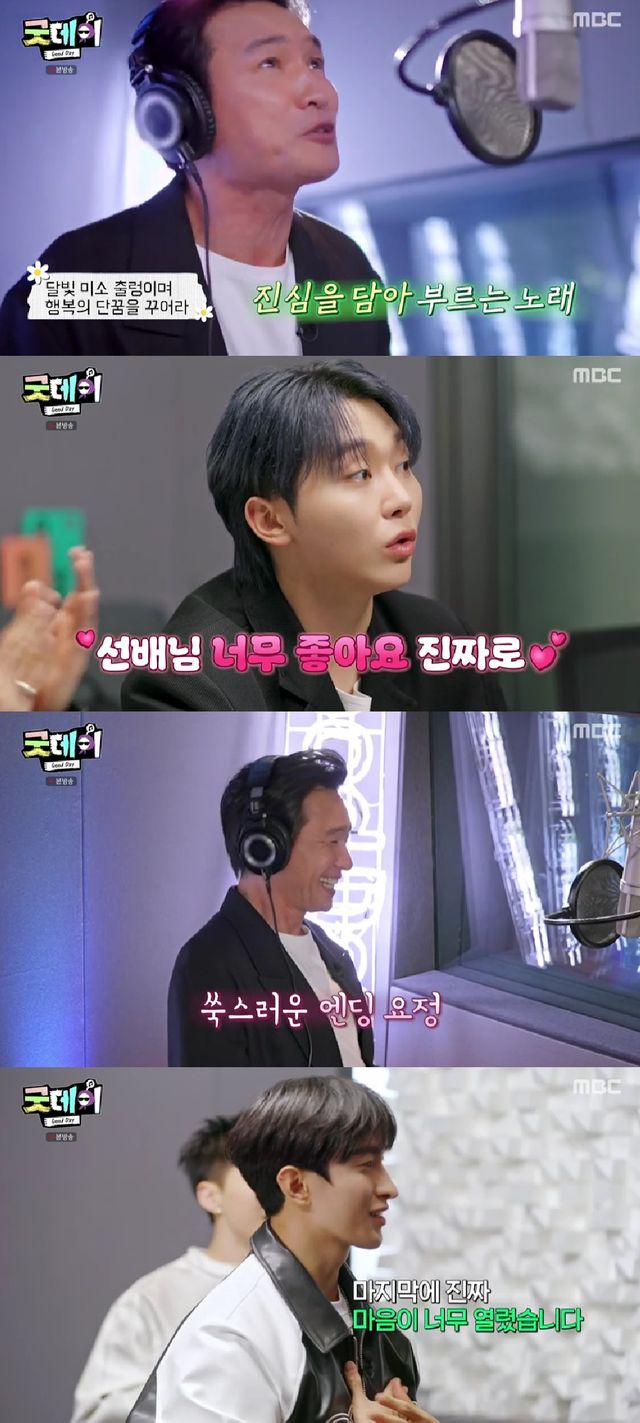 음실에 들어선 황정민은 단체 파트 녹음부터 시작했다. 시원시원한 고음과 정확한 음정으로 곡을 소화하자, 이를 지켜보던 부승관은 "선배님, 너무 좋다"며 감탄을 아끼지 않았다.