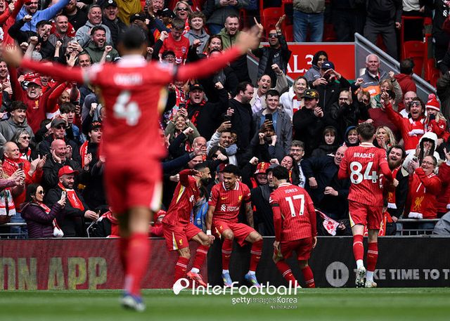 리버풀은 13일 오후 10시(한국시간) 영국 리버풀에 위치한 안필드에서 열린 2024-25시즌 프리미어리그 32라운드에서 웨스트햄 유나이티드에 2-1로 이겼다. 이로써 리버풀은 승점 76점에 도달했다. 남은 6경기에서 승점 6점만 따내면 우승이다.