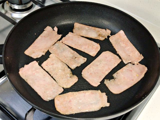 저는 스팸을 얇게 썰어서 바삭하게 구운걸 좋아해요.