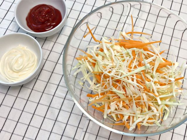 케첩과 마요네즈를 1:1 비율로 넣고 골고루 섞어주세요.