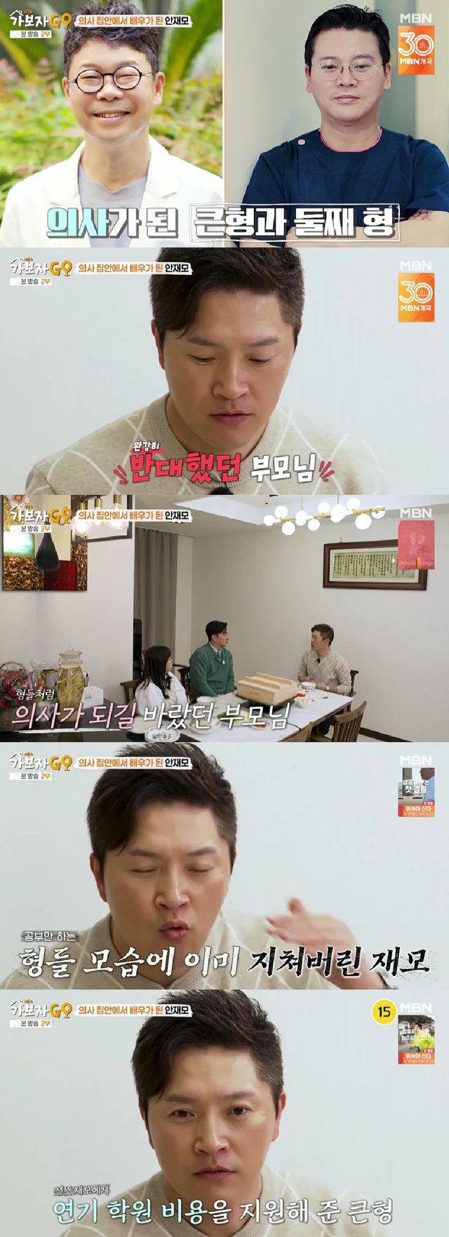 연기를 시작하게 된 계기에 대해 안재모는 "제가 4형제 중 막내인데 큰형과 둘째 형이 의사다"며 "(배우 꿈에 대한) 반대가 있었다. 부모님이 의대 가라고 하셨는데 끊임없이 공부하는 형들의 모습에 이미 지쳤는지 모른다"고 털어놓았다.