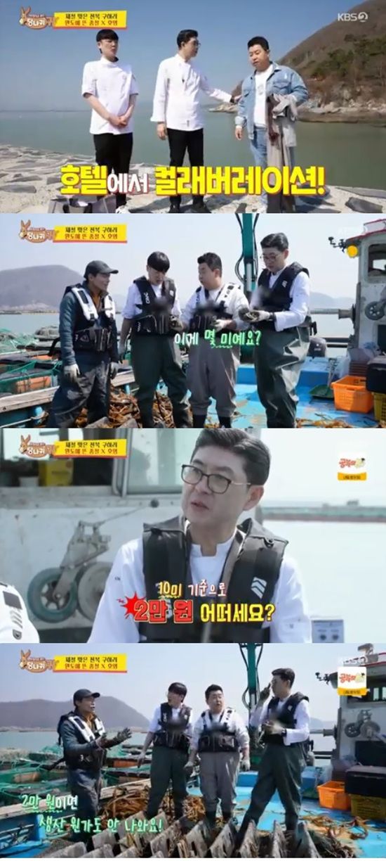 신종철과 정호영은 전복 양식장 사장님을 만나 전복 양식장으로 이동했다. 신종철은 사장님한테 전복 10미를 기준으로 2만 원 어떠냐고 물어봤다.