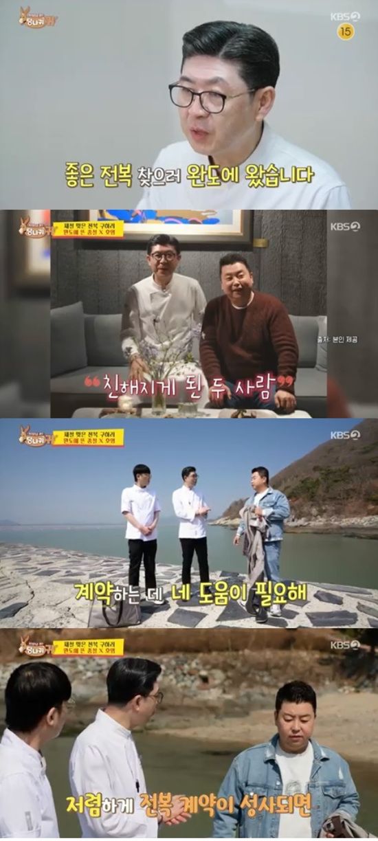 신종철은 전복 계약을 할 때 중요한 사람을 불렀다면서 누군가를 기다렸는데 정호영이 등장을 했다. 신종철과 정호영은 10년지기의 절친한 사이라고.