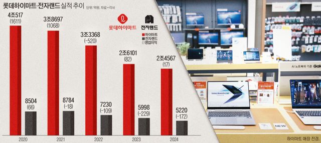 매장도 지속적으로 줄어드는 추세다. 롯데하이마트 점포는 2019년 말 466개로 정점을 찍고 지난해 330여 개로 130여 개가 줄었다. 전자랜드 점포도 2021년 131개에서 지난해 100여 개로 30여 개가 감소했다. 양사를 더해 160여 개나 쪼그라든 셈이다.