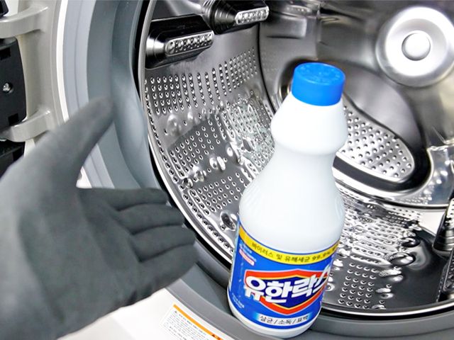 그다음 세탁기의 통세척 또는 통살균 기능을 작동시켜 주세요.