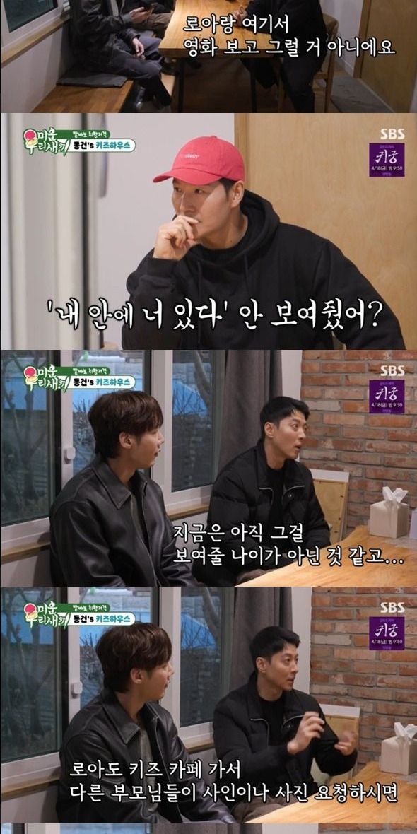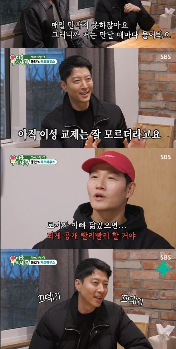 김종국은 "로아가 아빠 닮았으면 공개를 빨리 하고 많이 할 거다. 아빠에게 숨기는 스타일이 아닐거다"라며 돌직구를 던졌다. 이동건은 "그럼 안 된다고 알려줘야겠다"라며 너스레를 떨었다.