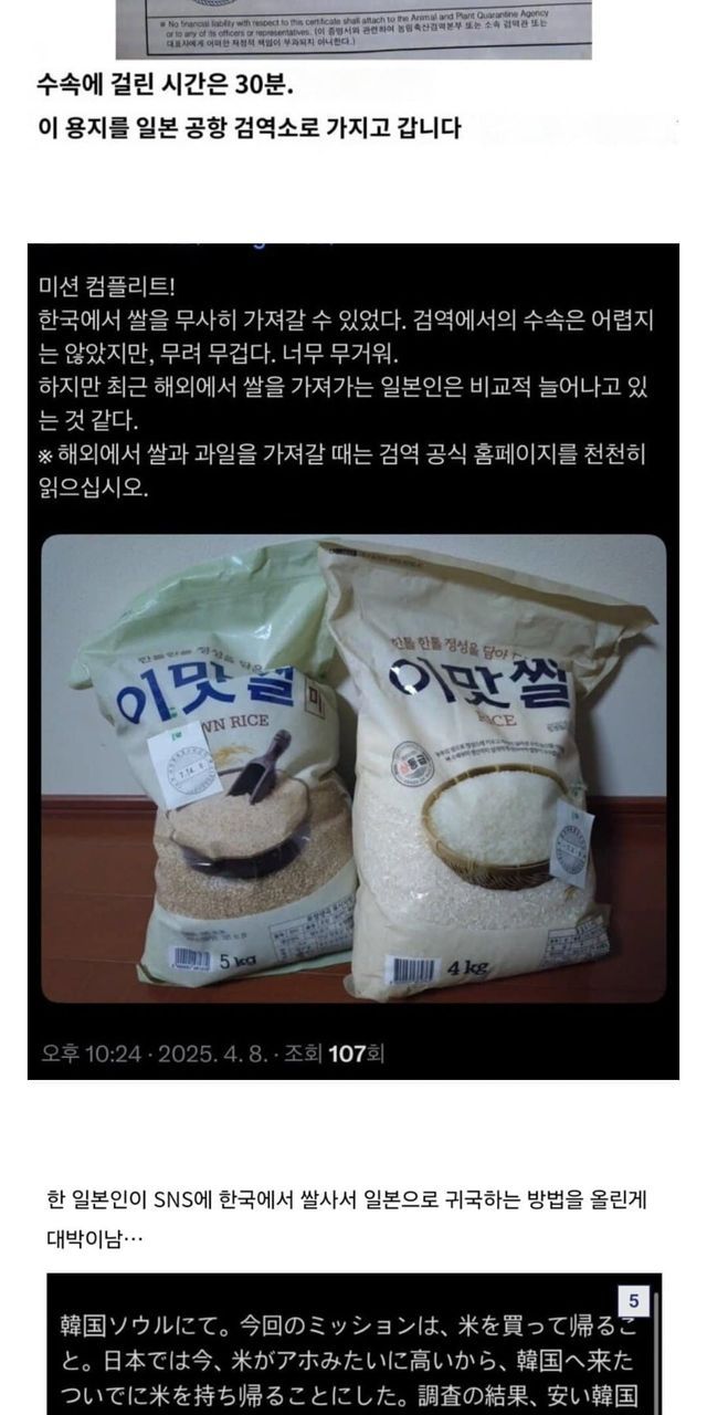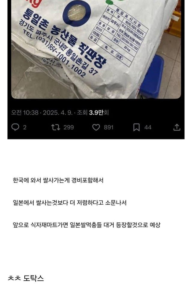 일본의 쌀 가격때문에 한국에서 쌀 사가는 일본인들,,