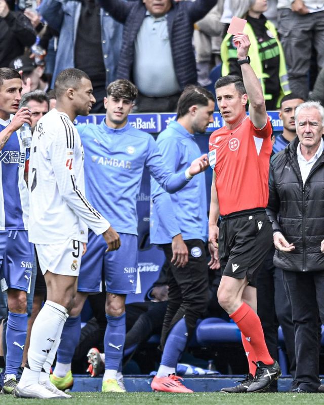 음바페는 13일(한국시간) 스페인 비토리아의 멘디소르트사에서 열린 데포르티보 알라베스와의 2024~25 라리가 31라운드서 선발 출전했으나 전반 38분 만에 퇴장당했다.