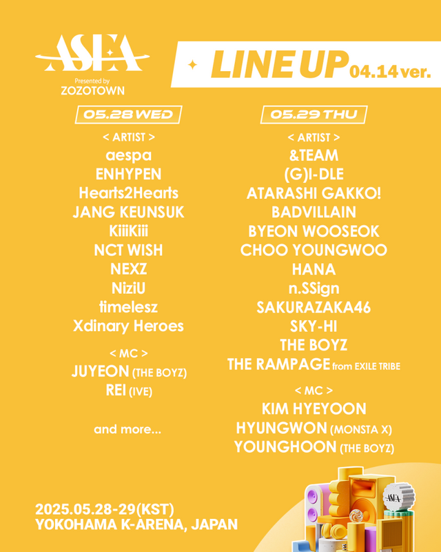 음악과 스타, 팬이 하나 되는 '아시아 스타 엔터테이너 어워즈 2025 presented by 조조타운 (이하 ‘ASEA 2025’)가 5월 28일, 29일 일본 요코하마시 K아레나 요코하마에서 열리는 가운데 (여자)아이들이 5월 29일 출연을 확정했다고 4월 14일 ASEA 조직위원회가 공식 발표했다.