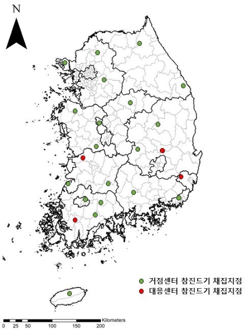 2025년 참진드기 감시 사업은 질병관리청 질병대응센터(호남, 경북, 경남)와 보건환경연구원(부산, 인천, 광주, 세종, 전남, 경남, 강원, 전북), 기후변화 매개체 감시 거점센터가 협업하여 전국 23개 지점에서 매월 수행하고 있다. 감시 사업을 통해 수집된 참진드기 밀도와 병원체 검출에 대한 정보는 감염병포탈을 통해 제공된다.