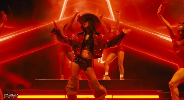 제니는 13일(현지시간) 미국 캘리포니아주에서 열린 대형 야외 음악 축제 ‘코첼라 밸리 앤드 아츠 페스티벌’(이하 코첼라)에 솔로로 출연해 첫 번째 솔로 정규 앨범 ‘루비’ 수록곡부터 타이틀곡까지 총 13곡을 선보였다. 서부 스타일의 모자와 선글라스 차림은 무대를 완성도 있게 꾸며줬다.