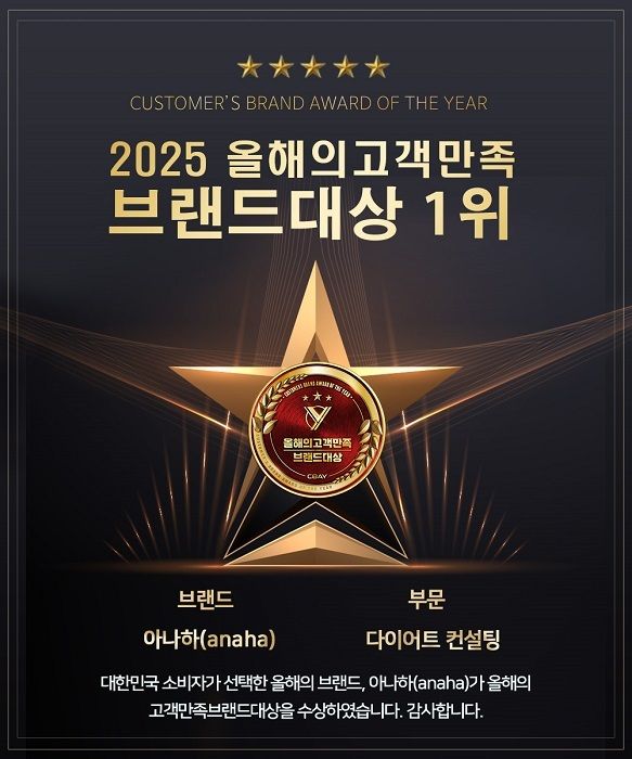 바디케어 브랜드 아나하가 ‘2025 한국소비자베스트브랜드대상’에서 다이어트 부문 대상을 수상하며 고객 만족과 브랜드 가치를 입증했다.