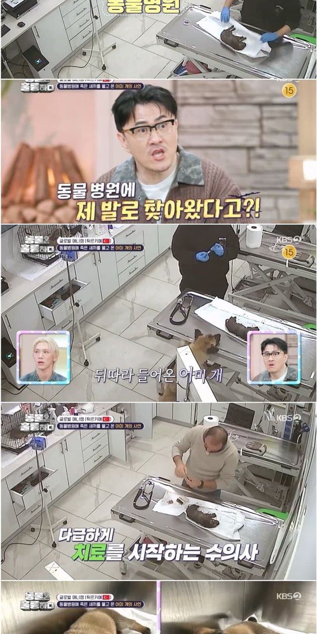 새끼를 살리기 위해 직접 동물병원을 찾은 어미 개