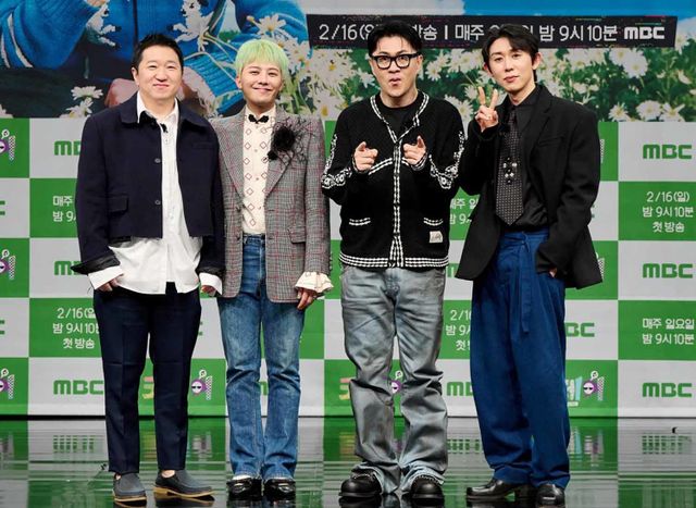 정형돈, 지드래곤, 데프콘, 코드쿤스트(왼쪽부터)가 2월 13일 오후 온라인 형식으로 진행된 MBC 새 예능프로그램 ‘굿데이’ 제작발표회에 참석해 포즈를 취하고 있다. / MBC 제공