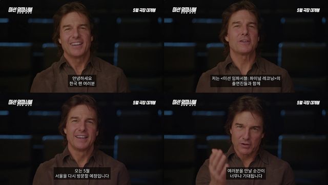 내한 확정 소식과 함께 공개된 톰 크루즈의 인사 영상은 밝은 미소와 함께 팬들과의 만남에 대한 기대감을 담고 있어 이목이 집중된다. 톰 크루즈는 "'미션 임파서블: 파이널 레코닝'의 출연진들과 함께 오는 5월 서울을 다시 방문할 예정이다"라며 내한을 앞둔 설레는 마음을 전해 팬들의 가슴을 다시 한번 뛰게 만든 것에 이어, "여러분을 만날 순간이 너무나 기대된다"라며 스크린으로 다시 만날 '에단 헌트'의 새로운 활약에 대한 기대를 높인다. 이처럼 톰 크루즈의 12번째 내한을 확정한 '미션 임파서블: 파이널 레코닝'은 압도적인 스케일과 한층 더 견고해진 팀워크로 전 세계 관객들을 열광시킬 것이다.