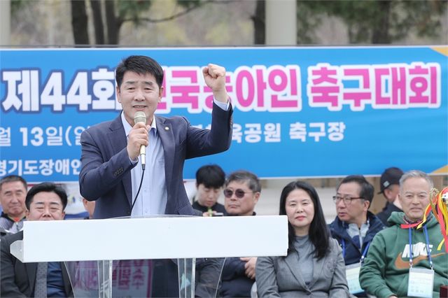 (화성=뉴스영 공경진 기자) 화성특례시의회(의장 배정수)는 지난 12일 화성시 비봉체육공원에서 열린 ‘제1회 경기도지사기배 겸 제44회 전국농아인축구대회’ 개회식에 참석해 장애인 체육 활성화에 대한 지지를 표명했다.