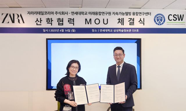 자라리테일코리아(자라)가 연세대학교 미래융합연구원 지속가능웰빙융합연구센터(연세대 연구센터)와 산학협력 업무협약(MOU)을 체결했다.