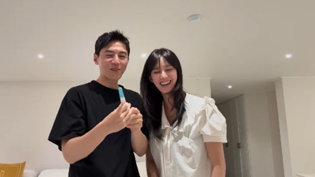 14일 지소연은 자신의 소셜 미디어를 통해 둘째 임신 소식으로 기뻐하는 부부의 모습을 게재했다.