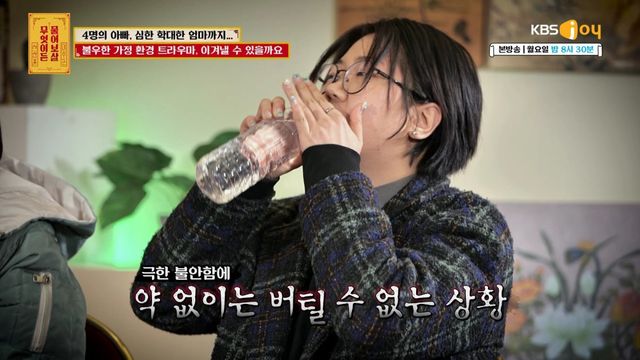 14일 방송된 KBS Joy ‘무엇이든 물어보살’ 312회에는 어린 시절부터 겪어온 가정폭력 트라우마를 겪은 사연자가 이모와 함께 출연했다.