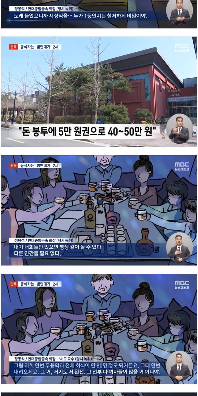 "한양대 무용과 학생들 동원해 현대家 회장님 술접대".