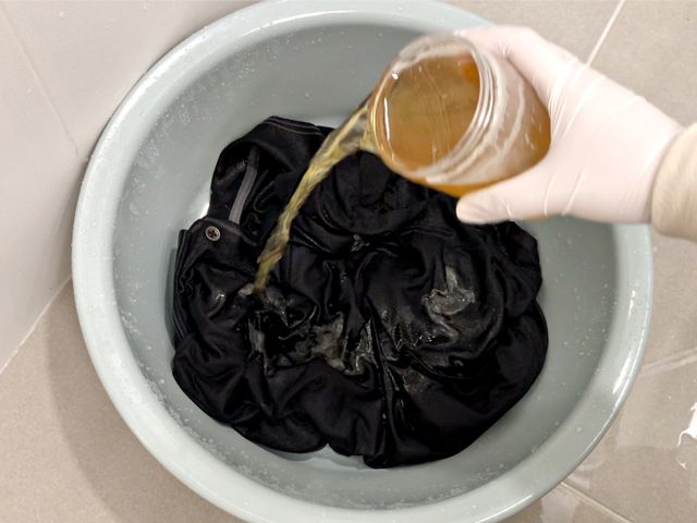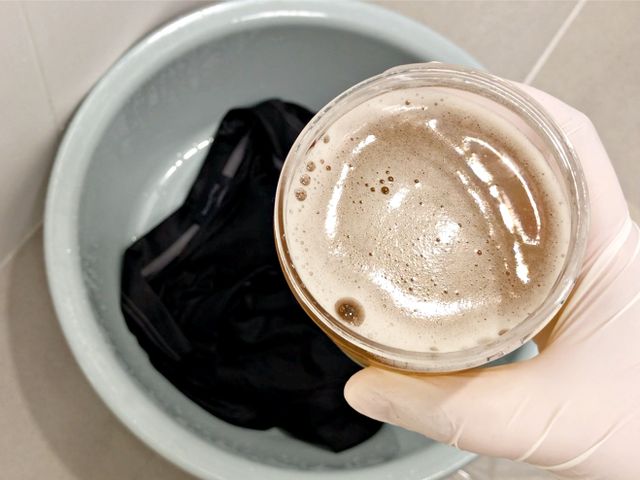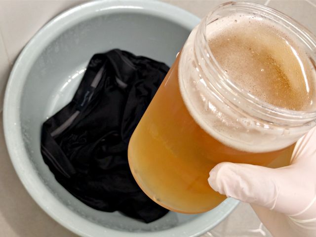 맥주물에 검정옷을 담근 상태로 20분 기다려주시고요.