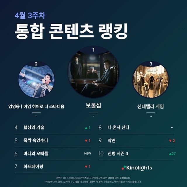 4월 3주차 통합 콘텐츠 랭킹 순위 / 키노라이츠